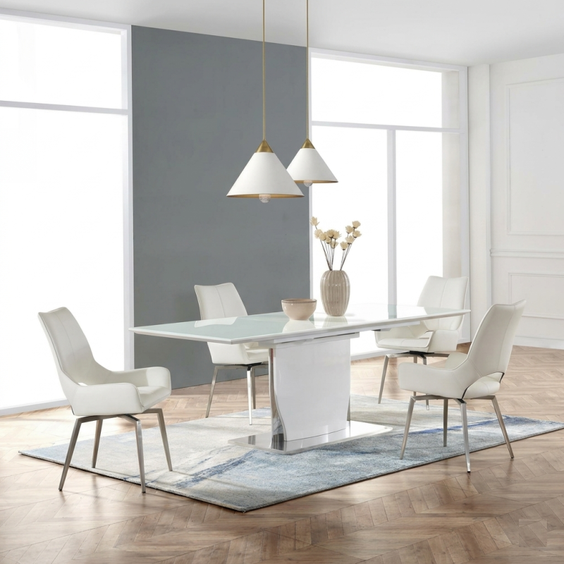 style that's as eye-catching as it is practical for your contemporary dining space. A high gloss white finish with brushed