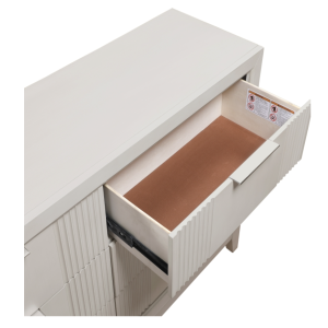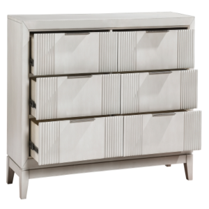 to create a visually appealing look for your bedroom. Reeded accenting fronts the drawers of the dresser.